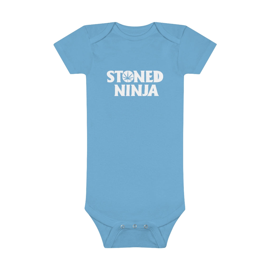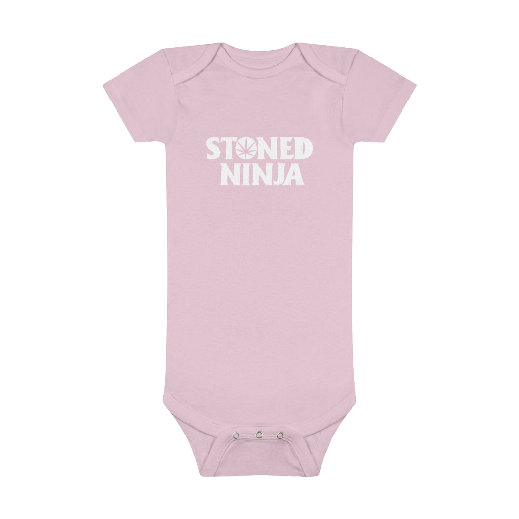 The custom short-sleeve baby Onesie® is built from 100% cotton rib. This makes for a comfortable, secure fitting for newborns and toddlers. The neckline is constructed with a lap shoulder. This inclusion assists with manipulating the fabric around the baby’s head. The bottom has a snap closure - designed with easy changing in mind. Both legs have ribbed openings for stability.